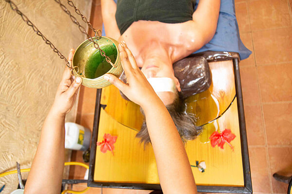 Sarwangadhara is a ‘pouring oil’ treatment for the whole body.