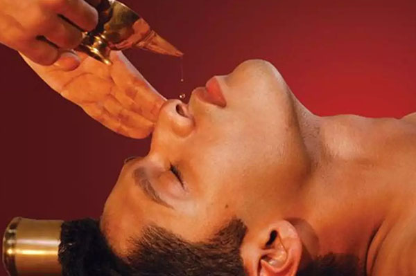 Nasya is one of the 5 panchakarma (Ayurvedic detoxification therapies) techniques. It is the application of herbal substances into the nose. The nose is the gateway into the head, the sinuses, and deeper into the lungs. The most common Nasya treatment includes the application of Ghee or Oil, sometimes with additional powdered herbs. When Nasya is performed correctly it enhances mental and sensory acuity, promotes mental clarity and emotional happiness, clears the nose and sinuses of obstruction, promotes cleansing and flow of lymphatic fluid, bestows a clear voice, promotes lightness of the body, soothes dryness in the nose, and eliminates the symptoms of disease.