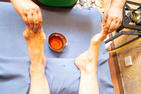 An Ayurveda Doctor will examine the guest on arrival and a welcome treatment in the form of an Ayurveda Therapy to relax the feet will be given. This is called “Pada Avagahanaya”or Foot in Oil Bath and “Pada Abyanga” or Foot Massage.